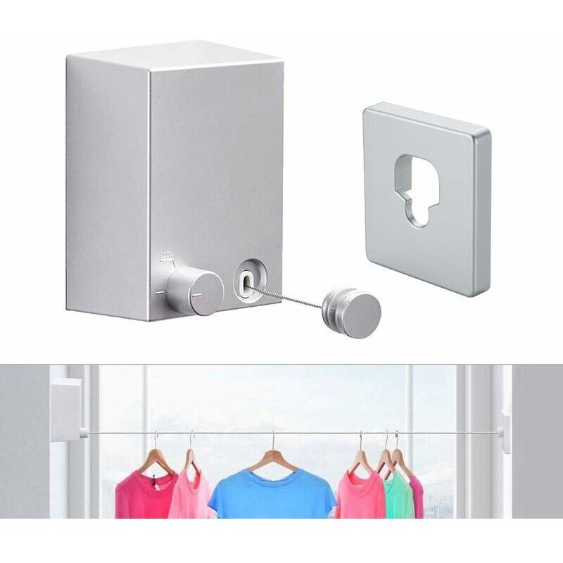 Étendoir à linge rétractable Pour intérieur et extérieur Étendoir à linge mural Suspension rétractable Verrou pour éviter l'affaissement - Argenté