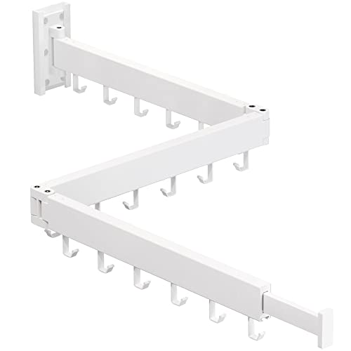 ZdwCyl Étendoir à Linge Mural, rétractable, Pliable (Trois Volets), Peut se Plier vers Le Haut, la Gauche et la Droite, économiseur d'espace, Blanc