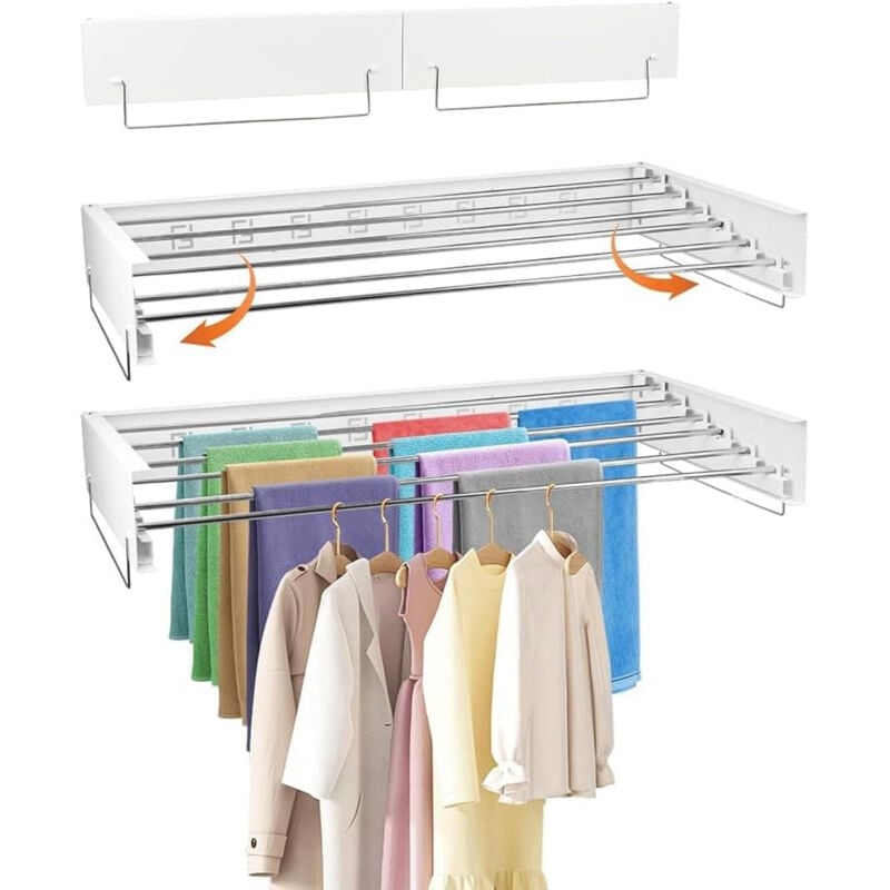 Xiiw - 100cm Etendoir mural gain de place, extensible Étendoir à linge mural, Portant à Vêtements, Blanc