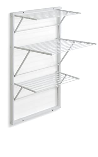 ZdwCyl Étendoir à Linge Mural pour économiser de l'espace - Rétractable et Pliable (3 Volets) - Blanc (Anneau)