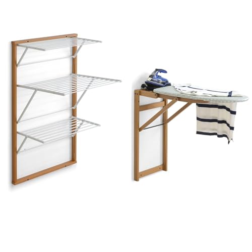 Arredamenti Italia Étendoir à Linge Mural Karim, Bois – Fermable – 16 m – Finition Cerise AR-It & Planche à Repasser Murale 633 Planche à Repasser Jolly, Bois – Fermé