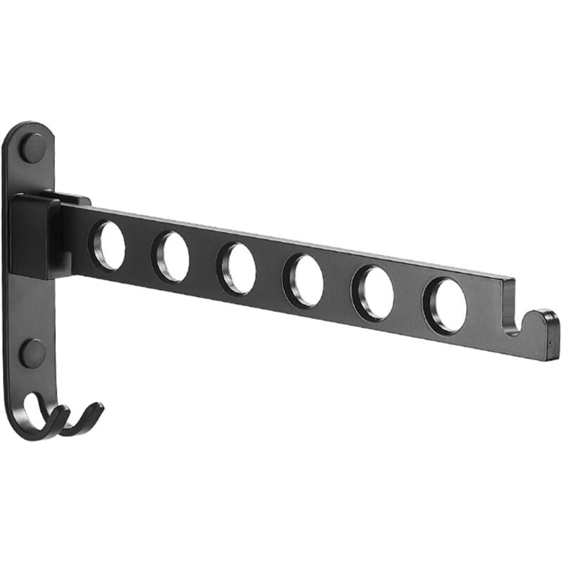 Séchoir à linge mural, étendoir à linge mural pliable rotatif à 90°, 6 trous, noir