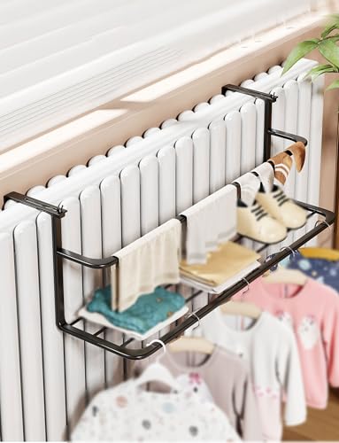 Étendoir à Linge pour radiateur, avec Crochets, pour Suspendre vêtements, Serviettes, sous-vêtements et Chaussures, pour rampes, radiateurs et Cadres de fenêtres (4 Crochets, 35 cm/14 po)