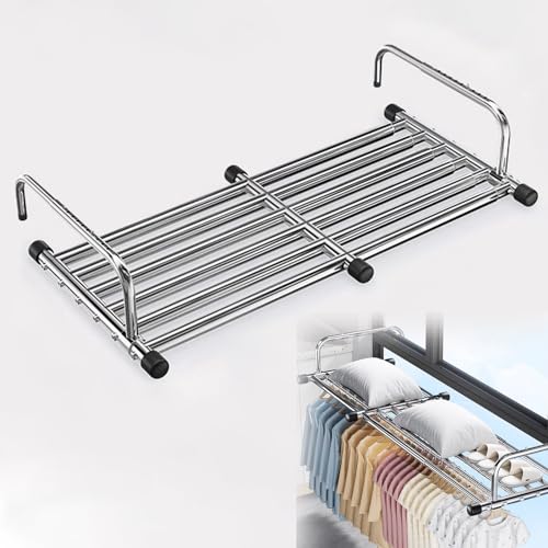 ANEWSIR Séchoir à Linge Balcon/Radiateur/Mural, Etendoir à Linge Pliable en Acier Inoxydable, Télescopique Sèche Linge Suspendu (Longueur: 42-66 cm)