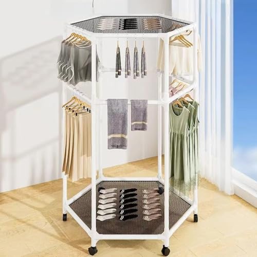 Hggdsac Étendoir à Linge, Portant à VêTements Rotatif sur Pied, Porte-manteau hexagonal, pour Linge Couverture Serviette Manteau Intérieur Extérieur, en Intérieur et Extérieur/Filet de séchage