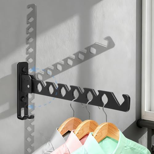 NEDOLUS Étendoir à linge pliable mural 100 cm - 6 tiges en aluminium résistant - Intérieur/Extérieur