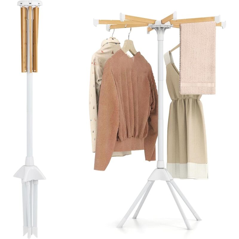 Etendoir a linge pliable - bambou et metal modele a ailes
