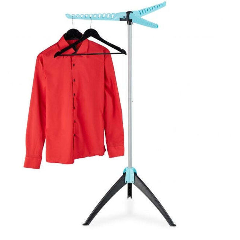 KITCHEN MOVE Etendoir à linge pliable avec ailes réglables 16 mètres LEVANT en acier inoxydable avec clips pour chaussettes et range chaussures Acier/Bleu 156 x 60 x 100 cm