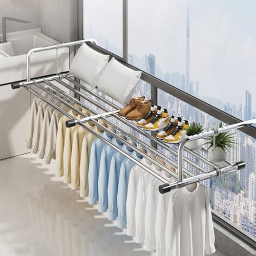 Séchoir à Linge Mural pour Balcon, séchoir à Linge sur radiateur, étendoir à Linge rétractable pour intérieur et extérieur, séchoir à Linge Pliable en Acier Inoxydable, séchoir à Linge suspe