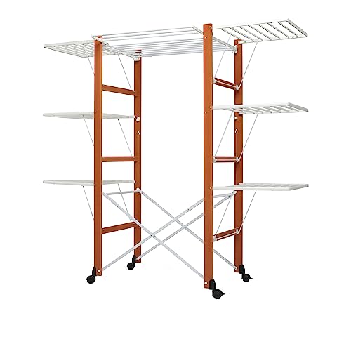 Todeco Séchoir à Linge, étendoir à Linge Pliant, Etendoir à 2 Niveaux aux Ailes Pliables, avec roulettes, 174 x 84 x 105 cm, Acier Inoxydable, Charge maximale 30kg