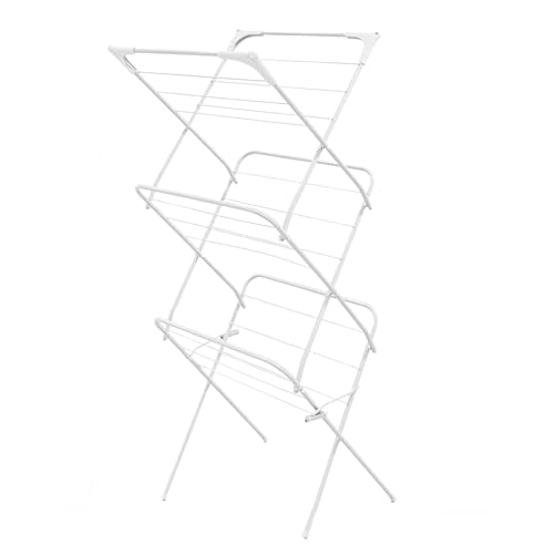 MSV - Étendoir Tour 3 Niveaux - Acier Blanc - Capacité Séchage 23M - Dimensions 63x63x135cm - Robuste et Polyvalent - pour Vêtements et Tapis - Usage Optimisé Petits Espaces