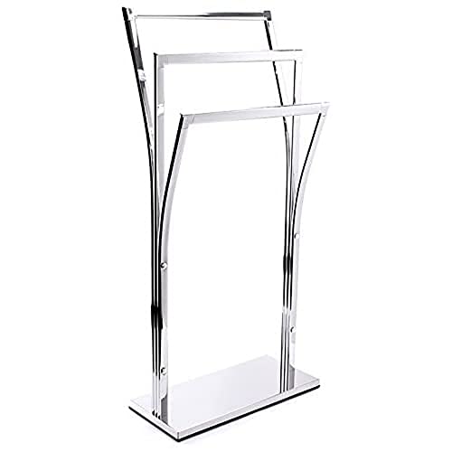 MSV - Porte Serviettes sur Pied 3 Barres en Acier Chromé - Étendoir à Serviettes de Salle de Bain Design Chic & Contemporain - Support de Rangement Métal Argenté - Gain de Place - 41x18,5x87cm