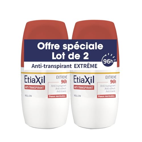 ETIAXIL - Déodorant Anti-transpirant - Transpiration Modérée - Aisselles - Extrême 96h - Peaux Normales - Efficacité 96h - Roll on - 50 ml (Lot de 2)