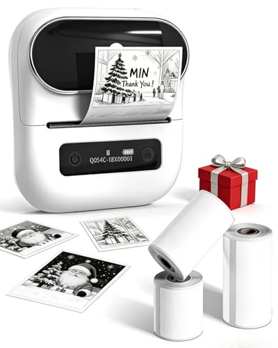 LFPERT CP3 Mini imprimante, thermique, étiqueteuse Bluetooth de poche, mini imprimante d'étiquettes thermiques pour Noël, compatible avec Android et iOS, blanc