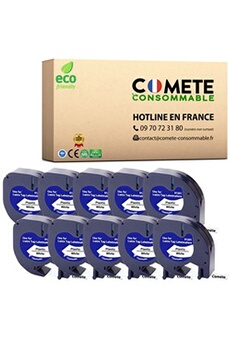 COMETE CONSOMMABLE 91201 Pack de 10 Rubans etiquetteuse compatibles avec DYMO 91201 12mm etiquettes adhésif Noir sur Blanc