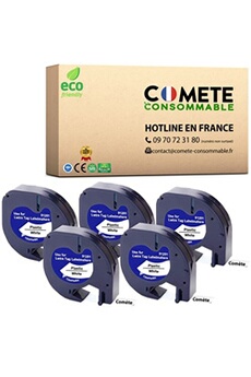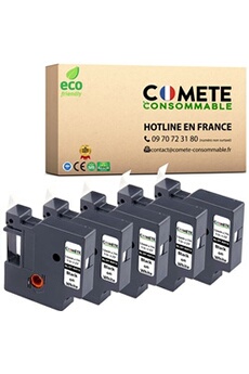 COMETE CONSOMMABLE 91201 Pack 5 Rubans etiquetteuse compatibles avec DYMO 91201 etiquettes Noir sur Blanc adhésif