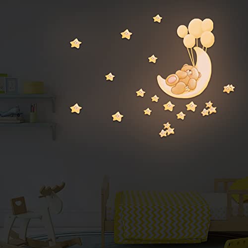 Stickers Muraux Ours Jaune Étoile Lune Stickers Muraux DIY Enfants Etoiles Phosphorescentes Plafond Etoile Fluorescente Chambre Enfant Adulte pour Salon Chambre Cadeau