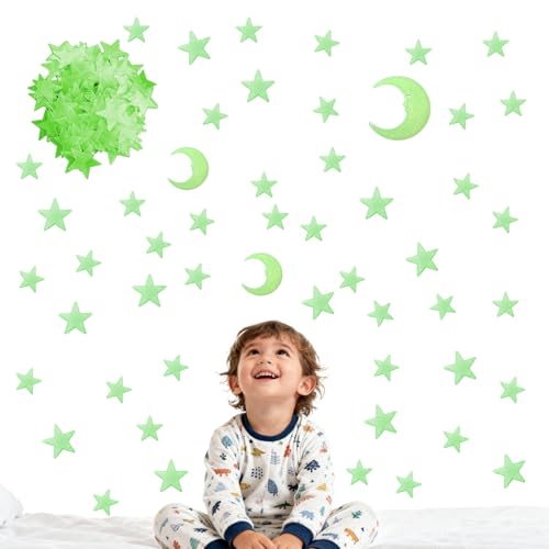 JRYXDS Étoiles Et Lune Kit, 3D Phosphorescentes Adhésives 101 Pièces Fluorescentes Pour Décoration Murale Lumineuse Idéal Mur Plafond, Cadeau Bébé Enfant, Etoile Phosphorescente Plafond