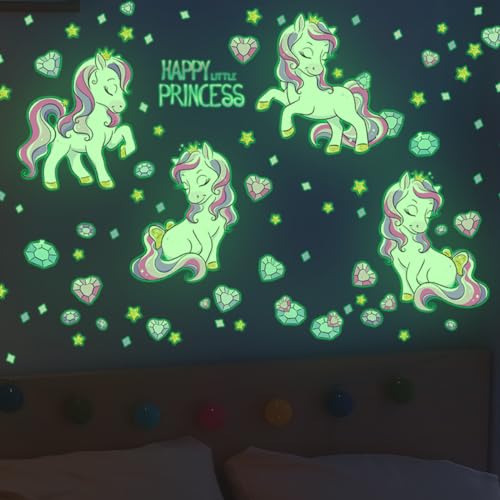 Licorne Etoiles Phosphorescentes Plafond Licorne Etoiles Fluorescente Lumineuse Amour Diamant Autocollants Stickers Muraux Décoration pour Enfants et Fille Chambre Vert