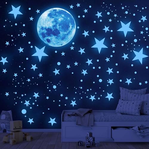 Étoiles phosphorescentes, 435 pièces, autocollants muraux phosphorescents pour plafond, étoiles et lune, pour décoration murale de chambre d'enfant, salon (bleu)