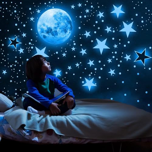 Yolistar 342 pièces Etoiles Phosphorescentes Plafond Lune, gommettes Autocollantes Enfant, Autocollants Lumineux, pour Bébé Chambres d'Enfants Fille Garcon Plafond Décoration