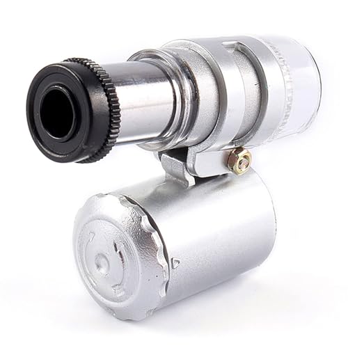 Microscope 60x, Mini Loupe 60x, Catégorie Microscope de Poche Bijoux Loupe Loupe Le Verre Peut être à Distance Focale avec Loupe à Lumière UV LED et étui en Cuir PU Noir, pour