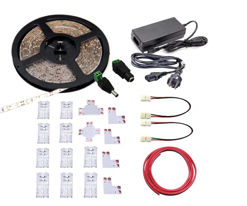 Jandei - Kit de bande LED flexible 12 V, 120 LEDs/m, IP20 pour intérieur, SMD2835, bobine 5 mètres, lumière blanche 6000 K (prêt à être assemblé, avec transformateur)