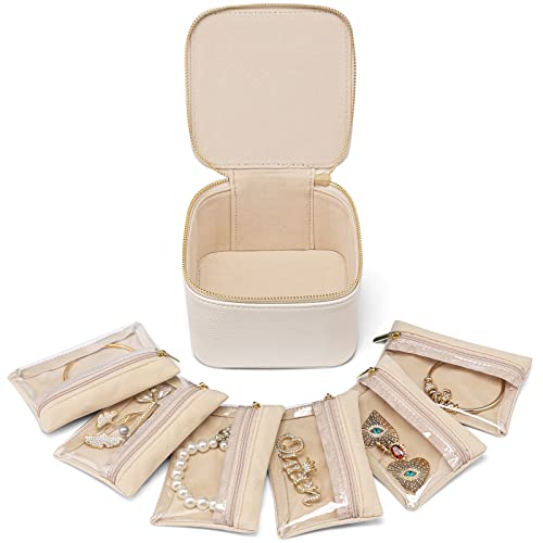 Vlando Boîte à bijoux de voyage, essentiels de voyage, organisateur de bijoux avec 6 pochettes à bijoux en velours, étui à bijoux pour collier, bague, cadeaux pour femme