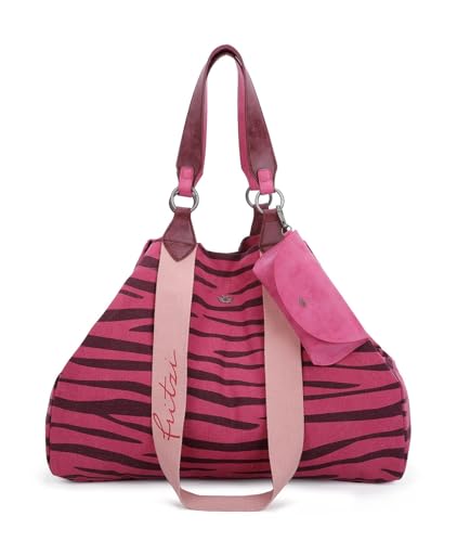 Fritzi Izzy Canvas Zebra Pink Shopper Sac cabas mélange coton Femme Sac à main Festival Ville Plage vegan étui lunettes amovible imprimé zèbre 36 x 50 x 16 cm, Rose