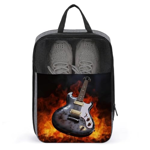 Sacs à chaussures pour voyage, étui à chaussures imprimé guitare brûlante pour voyage, sac à chaussures de voyage, sac de voyage imperméable et portable, sac de voyage pour homme et femme, guitare