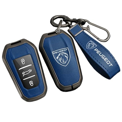 MCHHYL Étui de Clé Voiture en Cuir pour Peugeot Expert 3 (III) V I 2016-2024, Pochette Étanche Anti-Rayures avec Crochet Métallique,Blue-Gray