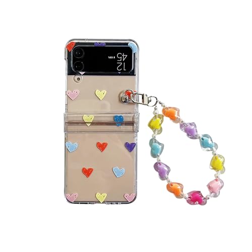 CrazyLemon Coque pour Samsung Galaxy Z Flip 3 5G, Clear Hard PC Hinge Protector Case avec Wristband Bracelet étui de Protective Mobile Phone Case - Coeurs colorés