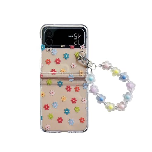 CrazyLemon Coque pour Samsung Galaxy Z Flip 3 5G, Clear Hard PC Hinge Protector Case avec Wristband Bracelet étui de Protective Mobile Phone Case - Petites Fleurs