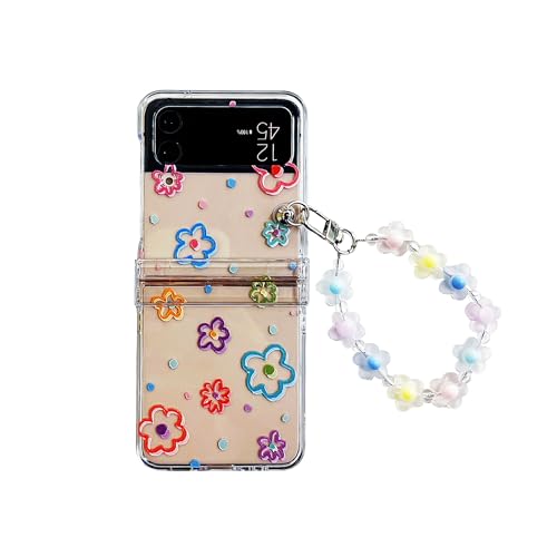 CrazyLemon Coque pour Samsung Galaxy Z Flip 5 2023, Clear Hard PC Charnière Protecteur Case avec Wristband Bracelet étui de Protective Mobile Phone Case - Petites Fleurs