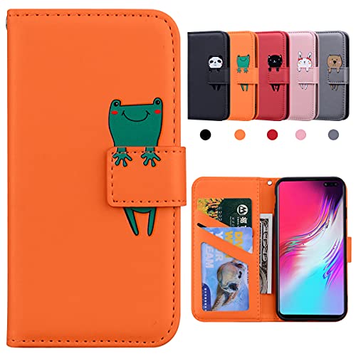 Coque Samsung S10 5g, Samsung Flip Coque pour Galaxy S10 5g, Antichoc TPU Housse Potection Samsung S10 5g, Portefeuille [Béquille][Fentes pour Cartes] Etui Samsung Galaxy S10 5g - Orange