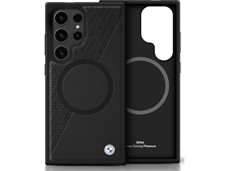 BMW Étui texturé et lisse en cuir MagSafe pour Samsung Galaxy S25 Ultra