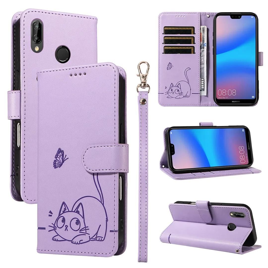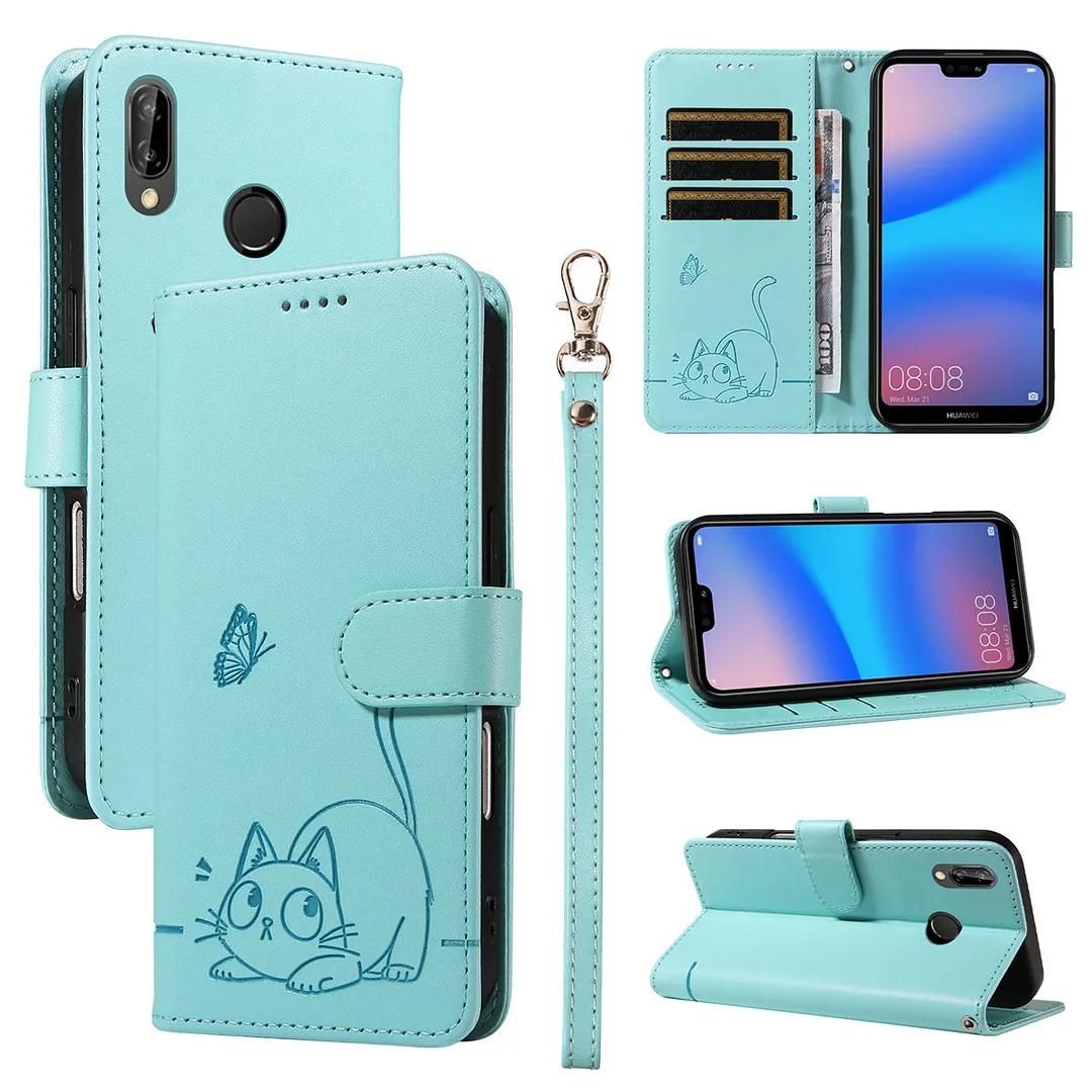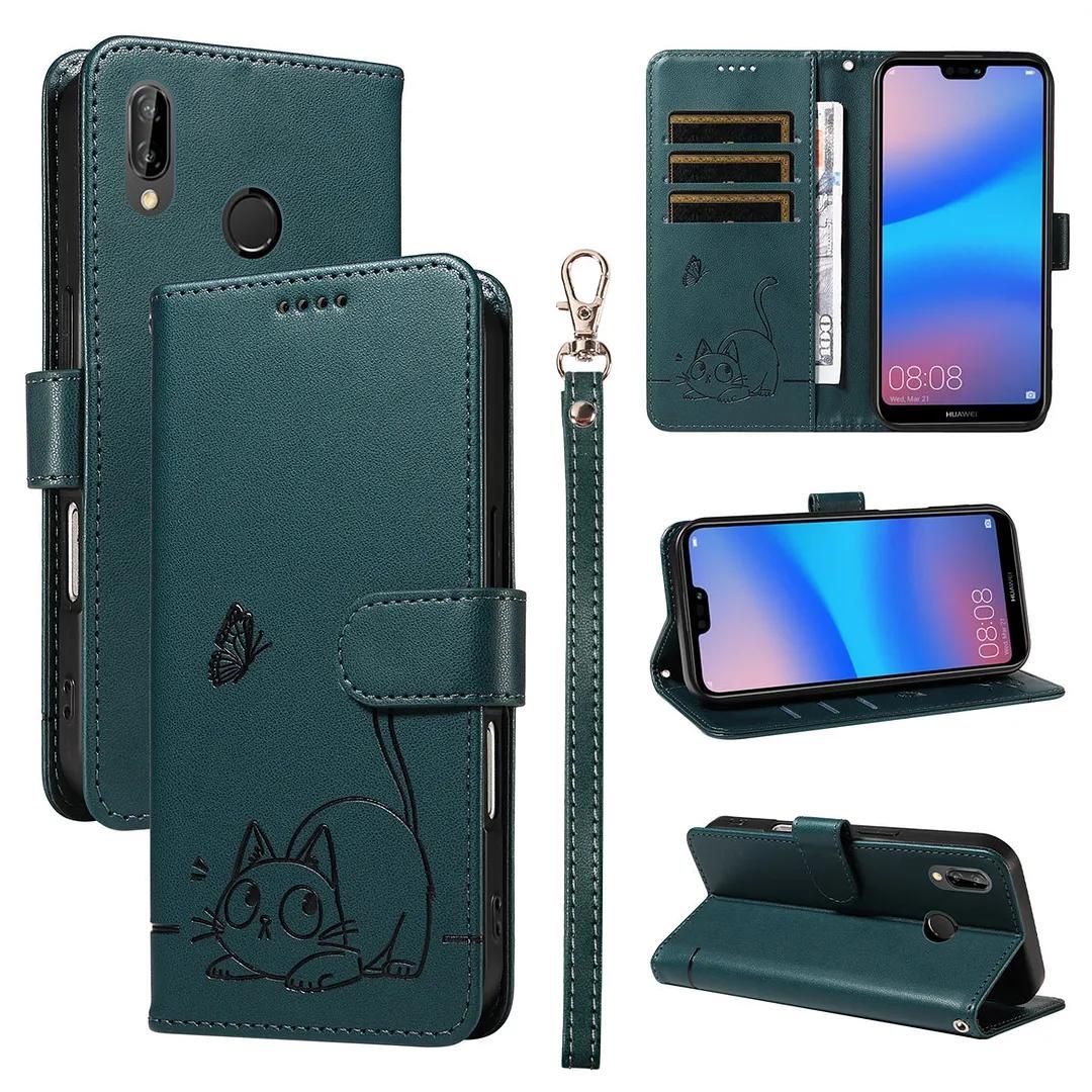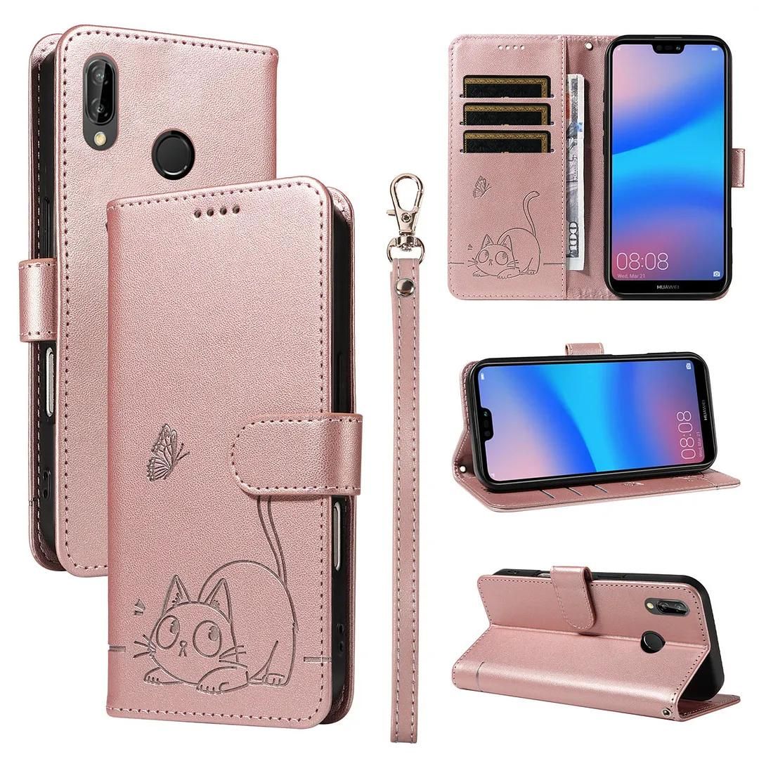 ShinyCase Étui pour Huawei P20 Lite Coque PU Leather Cuir Anti-Rayures Protection Cover Emplacement Carte Portefeuille Magnétique Téléphone Case pour Huawei P20 Lite,Chat de Dessin Animé