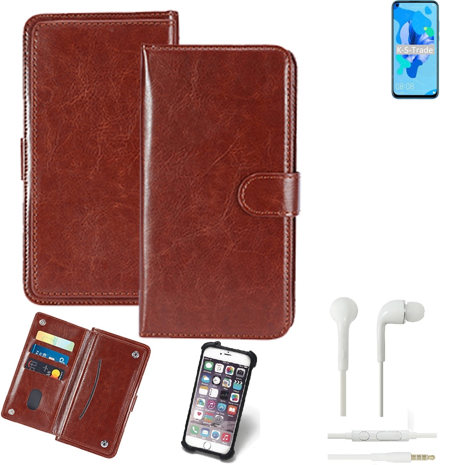 Étui pour Huawei P20 Lite 2019 + Écouteurs housse à rabat de protection sac p