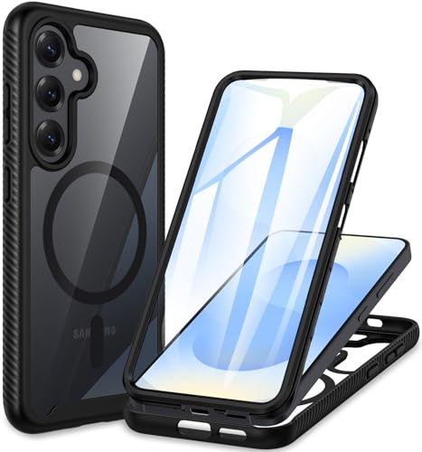 CENHUFO Magnétique Coque Samsung S25 / S24, Antichoc Housse avec Protection d'écran, 360° Téléphone Etui Double Face Case Transparent Portable Intégrale Coque pour Samsung Galaxy S25 / S24 - Noir