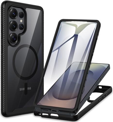 CENHUFO Magnétique Coque Samsung S25 Ultra, Antichoc Housse avec Protection d'écran, 360° Téléphone Etui Double Face Case Transparent Portable Intégrale Coque pour Samsung Galaxy S25 Ultra 5G -Noir