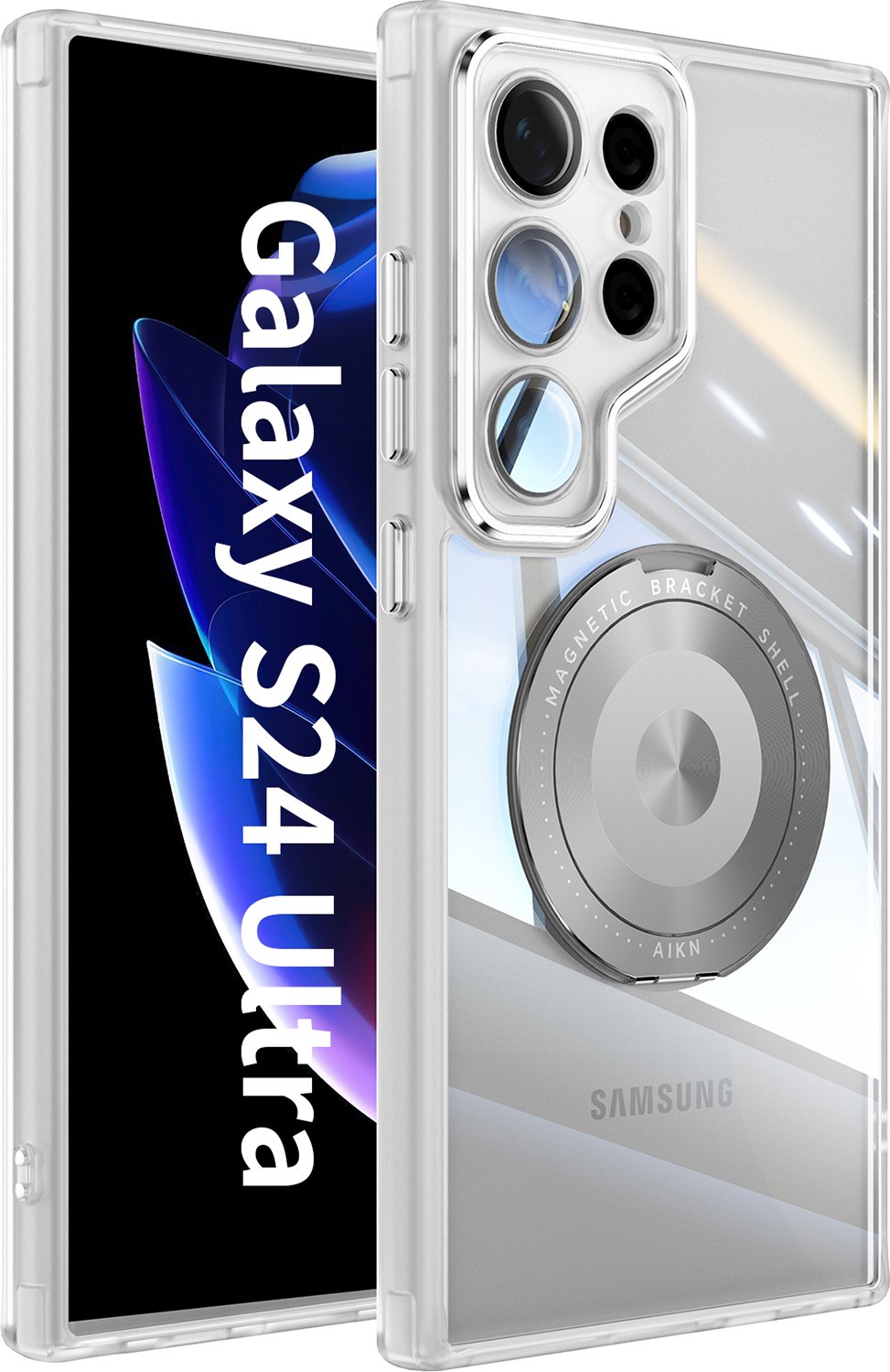 Etui pour téléphone portable Samsung Galaxy S24+ protection militaire transparente avec anneau magnétique et protection de l'appareil photo blanc
