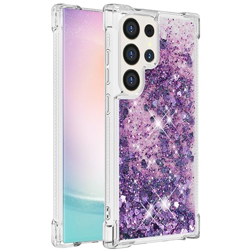 Yarxiawin Compatible pour Coque Samsung Galaxy S24 Ultra Transparente Glitter Aesthetic, Liquide Sables Mouvants Etui Samsung S24 Ultra Paillette Housse Silicone Case Antichoc Protection (Violet)