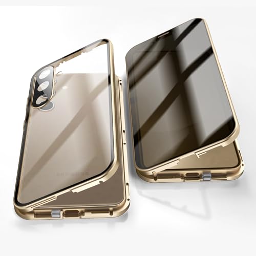 Jonwelsy Anti Peeping Coque pour Samsung Galaxy S24, 360 Degrés Protection Housse, Privacy Verre trempé Anti Espion Case Cover, d'adsorption Magnétique Bumper Métal Frame Etui pour S24 (Or)