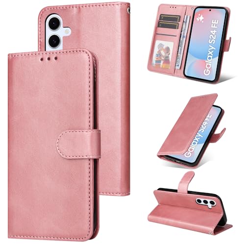 E-Lush Coque pour Samsung Galaxy S24 FE 5G Cuir PU, Portefeuille Etui pour Samsung S24 FE Coque Magnétique Flip Case avec Fonction Support Fente Carte Housse 360 Degrés Antichoc Protection, Or Rose