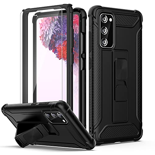 ORETECH Coque Compatible avec Samsung Galaxy S20 FE avec 2 x Protecteur D'écran en Verre Trempé,2 en 1 Antichoc Coque S20 FE avec Béquille Anti Rayure PC TPU Etui pour Samsung S20 FE Housse Noir
