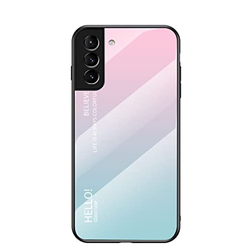 BRAND SET Coque pour Samsung Galaxy S22 Plus Antichoc Dos en Verre Trempé et Bord en Silicone TPU Résistant aux Chocs à Un Étui de Protection Etui pour Samsung Galaxy S22 Plus-Rose Bleu