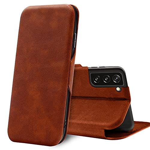 Verco Coque pour Samsung Galaxy S22+, Etui Housse pour Samsung S22+ Case Portefeuille Fonction de Support [Aimant intégré], Brun