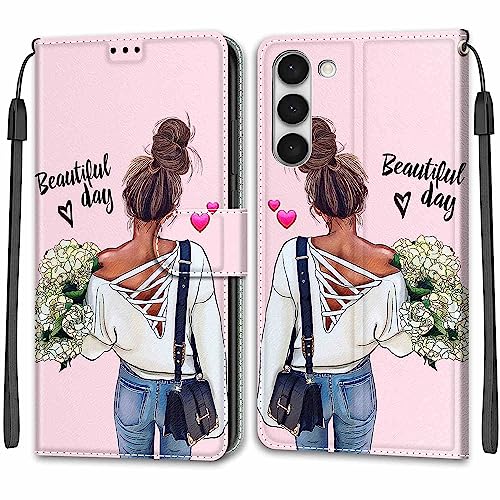 CASAFUNY Coque Samsung Galaxy S23 Antichoc Étui Samsung S23 5G Housse Protection en Cuir Magnétique Flip Case Portefeuille Etui en Protecion pour Samsung Galaxy S23 5G, Rose
