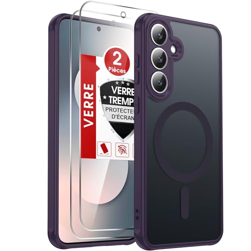 LeYi Coque Magnétique pour Samsung S25 FE / S25FE, avec 2 Verre Trempé, Compatible avec MagSafe, Étui Housse Antichoc Bumper TPU Dos Translucide Mat Fine, Violet