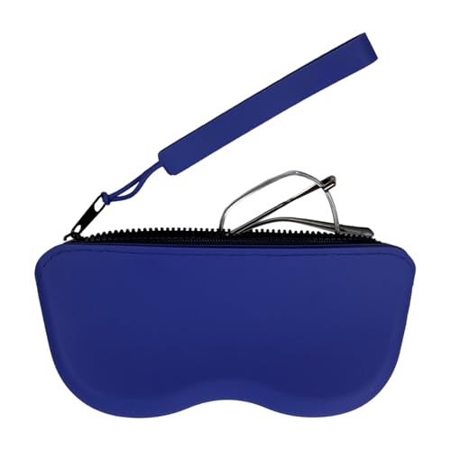 Generico Étui à Lunettes Souple - Protection en Silicone pour Lunettes | étui Anti-Rayures avec Fermeture éclair et Cordon pour Sport Voyage Plage Ski Utilisation Quotidienne, Bleu foncé,